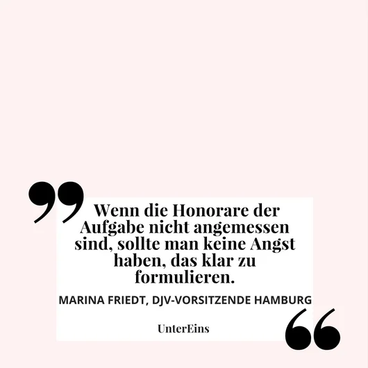 Marina Friedt ist freie Journalistin und seit 13 Jahren Vorsitzende des Hamburger DJV. Sie verrät, wie Jungjournalisten eine Nische finden, wie man souverän über Honorare verhandelt und was noch wichtig für Berufseinsteiger ist.